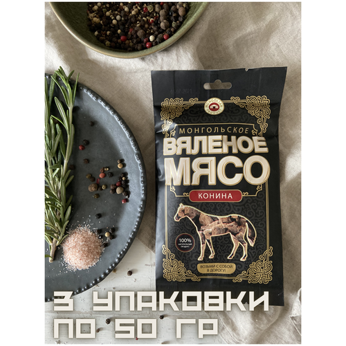 Вяленое мясо / Сушеное мясо / Конина / Мясо конины вяленое / Набор 3 упаковки по 50 гр / закуска к пиву