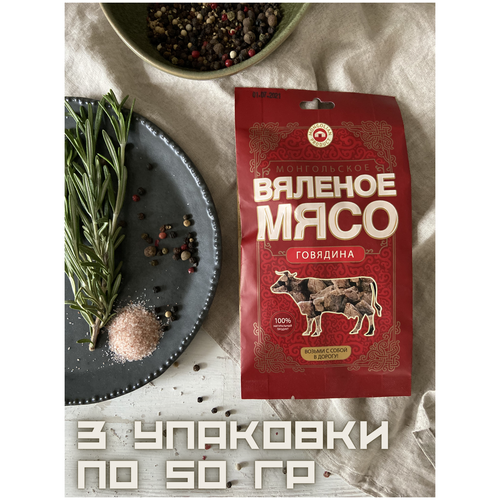 Вяленое мясо / Сушеное мясо / Говядина / Мясо говядины вяленое / Набор 3 упаковки по 50 гр / закуска к пиву