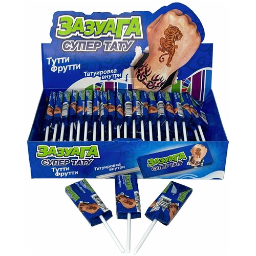 Зазуага жевательная конфета с тату вкус тутти-фрутти 50 шт. х 11,2 гр. Жевательные конфеты на палочке 560гр