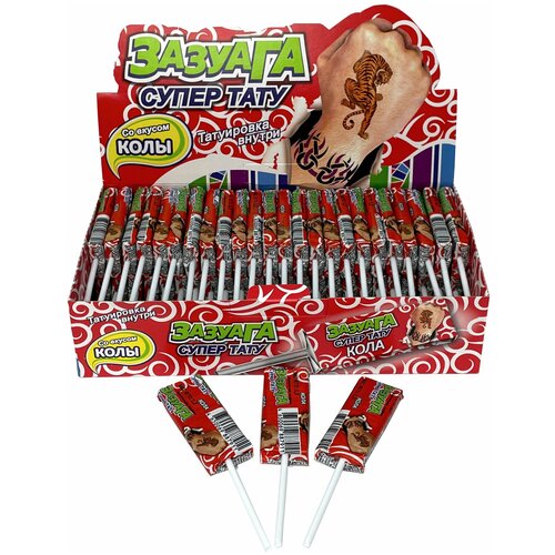 Зазуага жевательная конфета с тату вкус кола 50 шт. х 11,2 гр. Жевательные конфеты на палочке со вкусом колы 560гр