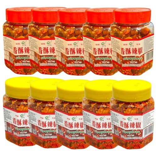 Китайский перчик с арахисом Сианласу / 10 шт. в ассортименте по 120 г / смесь перца, арахиса, кунжута / 5 красных +5 желтых