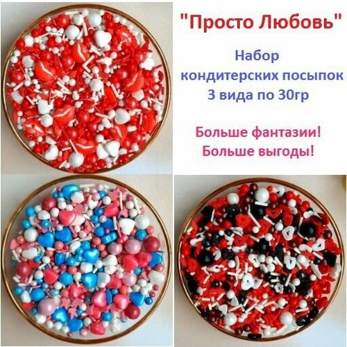 Кондитерская посыпка Просто Любовь, набор 3 вида по 30г
