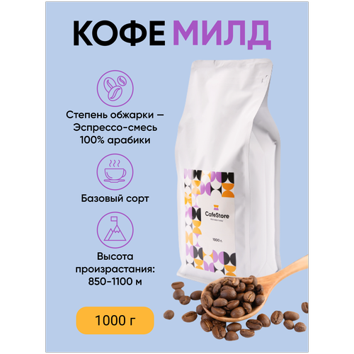 Кофе в зернах Милд классическое сочетание арабик из Бразилии и Уганды эспрессо-смесь 1000 гр