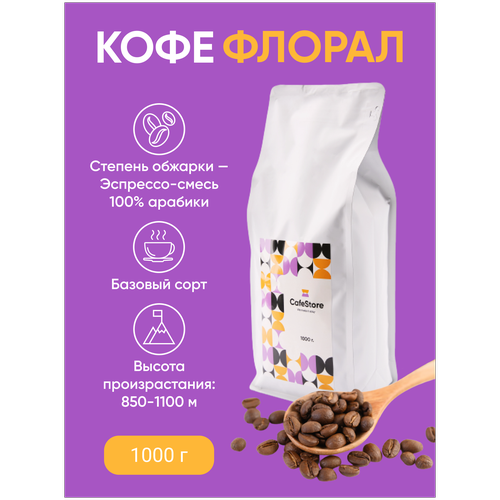 Кофе в зернах Флорал классическое сочетание арабик из Эфиопии 1000 гр