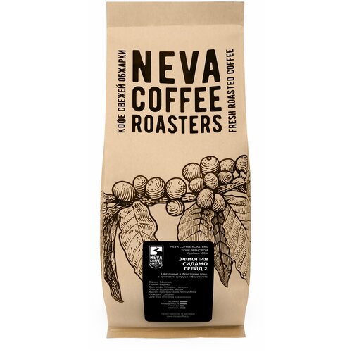 "Свежеобжаренный кофе в зернах Neva Coffee Roasters Эфиопия Сидамо Грейд 2, 1,00 кг, 100% Арабика"