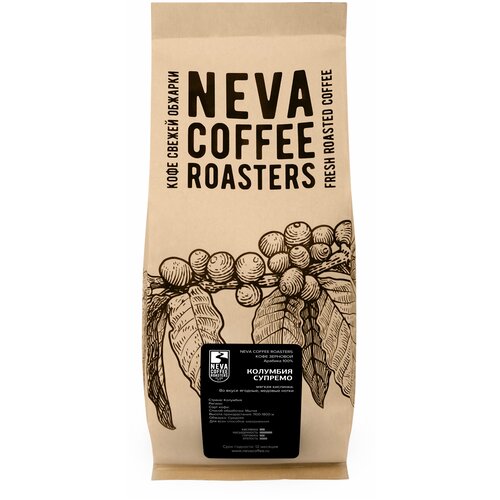 "Свежеобжаренный кофе в зернах Neva Coffee Roasters Колумбия Супремо, 1,00 кг, 100% Арабика"
