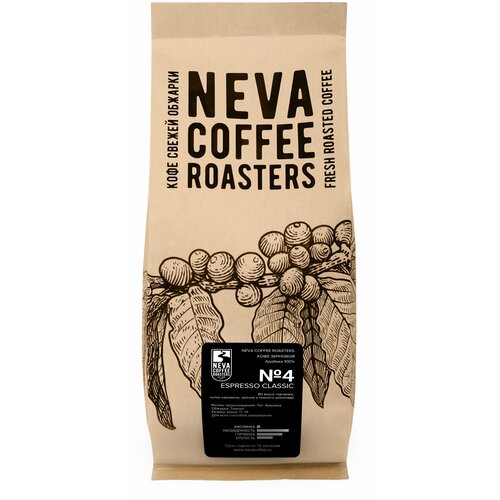Свежеобжаренный кофе в зернах Neva Coffee Roasters №4 Espresso Classic (Классик), 1,00 кг, 100% Арабика