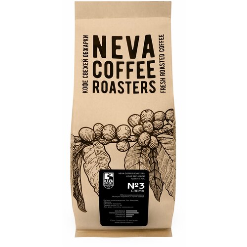 Свежеобжаренный кофе в зернах Neva Coffee Roasters №3 Crema. Крема. 1,00 кг. Арабика 70%/Робуста 30%