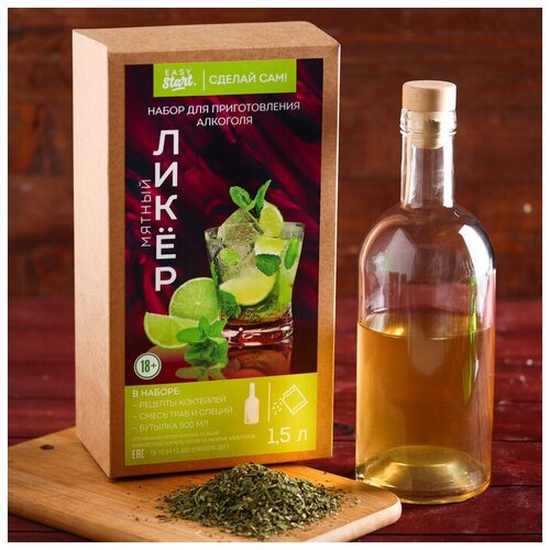 Подарочный набор для приготовления алкоголя «Мятный ликер»: травы и специи 43 г, бутылка 0.5 л, инструкция