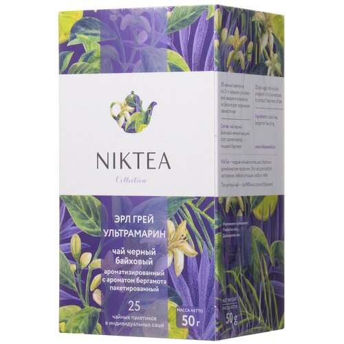 Чай Niktea Earl Grey Ultramarine/ Эрл Грей Ультрамарин, чай черный ароматизированный с ароматом бергамота пакетированный, 25п х 2гр