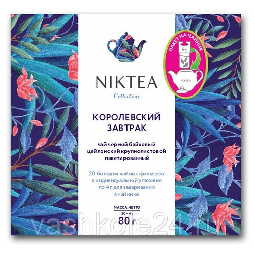 Чай черный пакетированный NikTea Королевский завтрак для чайника 20х4 гр.