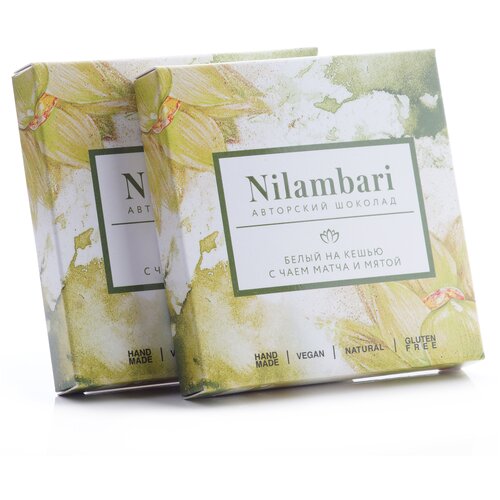 Шоколад Nilambari белый на кешью с чаем матча и мятой Набор 2 шт. / GreenMania веганский, без лактозы, без глютена, постный, натуральный