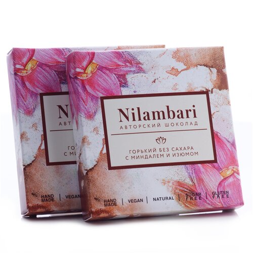 Шоколад Nilambari Горький без сахара с миндалем и изюмом Набор 2 шт. / GreenMania веганский, без лактозы, без глютена, постный, натуральный