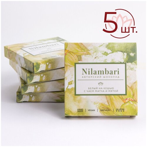 Шоколад Nilambari белый на кешью с чаем матча и мятой Набор 5 шт. / GreenMania