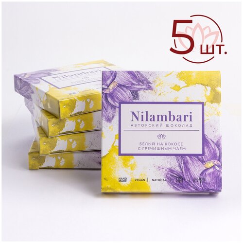 Шоколад Nilambari белый на кокосе с гречишным чаем Набор 5 шт. / GreenMania
