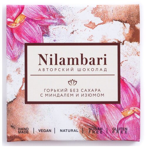 Шоколад Nilambari горький без сахара с миндалем и изюмом / GreenMania веганский, без лактозы, без глютена, постный, натуральный, 65 г