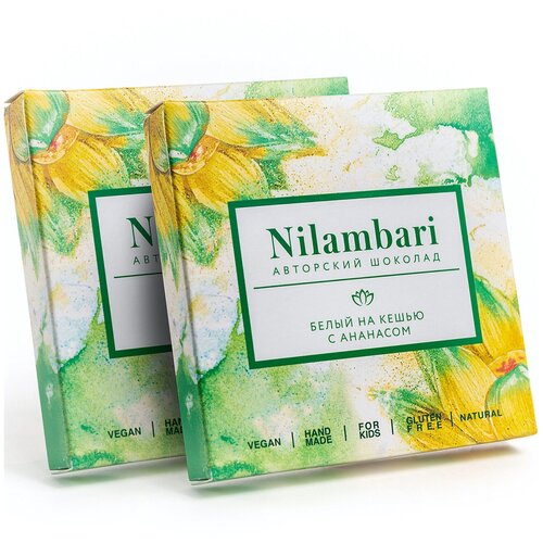 Шоколад Nilambari белый на кешью с ананасом Набор 2 шт. / GreenMania веганский, без лактозы, без глютена, постный, натуральный