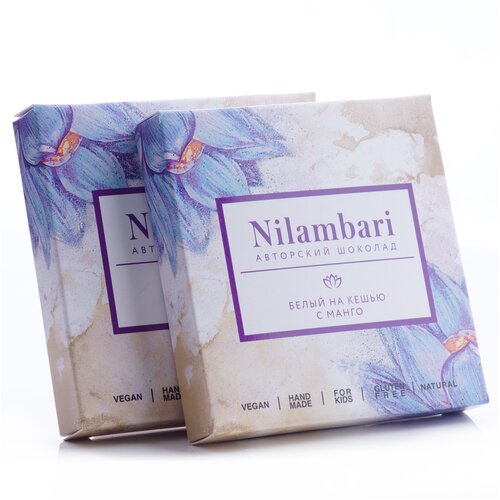 Шоколад Nilambari белый на кешью с манго Набор 2 шт. / GreenMania веганский, без лактозы, без глютена, постный, натуральный
