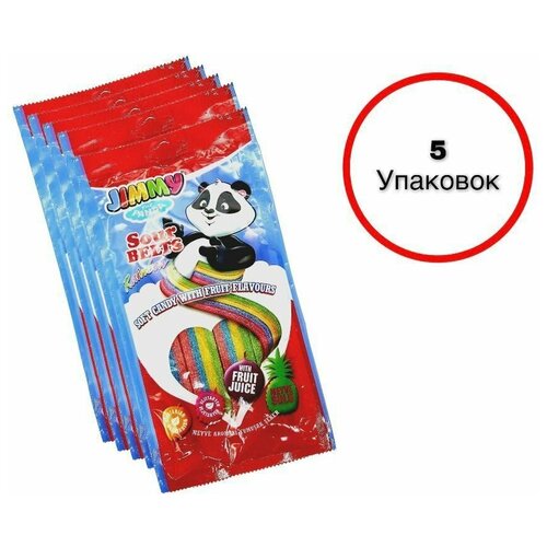 Жевательный мармелад JIMMY Panda разноцветные кислые ремешки, 1 штука- 75 гр, ассорти