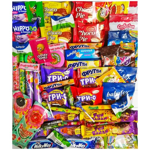 Двойной подарочный сладкий набор «Бант», свит бокс большой для 2-х детей из 56 сладостей
