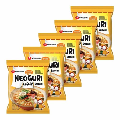 Лапша быстрого приготовления Неогури с морепродуктами Nongshim, пачка 120 г х 5 шт