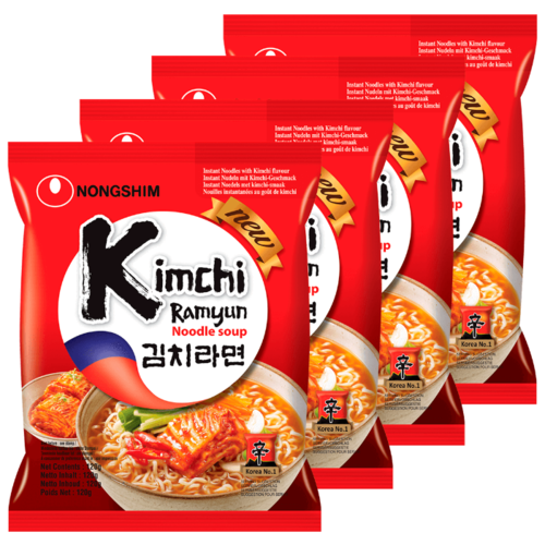 Лапша быстрого приготовления Кимчи Рамен Nongshim, пачка 120 г х 4 шт