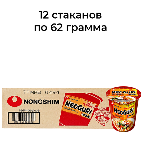Лапша быстрого приготовления Неогури с морепродуктами острая Nongshim, стакан 62 г х 12 шт