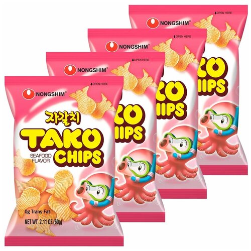 Чипсы Тако с морепродуктами Nongshim, 60 г x 4 шт
