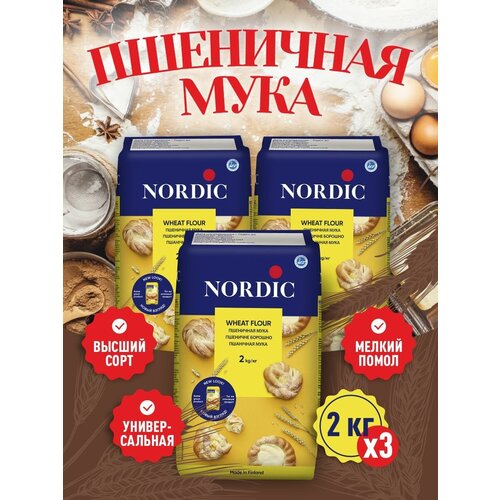 Мука & Кондитер. Мука пшеничная первый сорт Nordic 3шт по 2кг