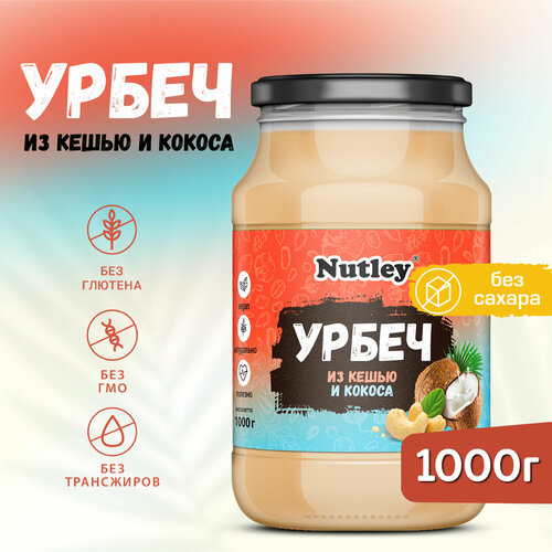 Урбеч кокос-кешью Nutley без сахара, диетическая ореховая паста из кешью и кокоса, 1000 г