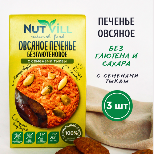 Овсяное печенье NutVill без сахара "С семенами тыквы", 3 шт х 85 г