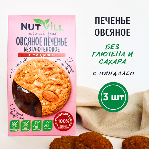 Овсяное печенье NutVill без сахара "С миндалем", 3 шт х 85 г
