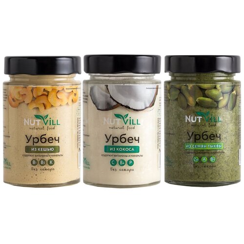 Набор урбечей "Кокос, Кешью, Тыква", Моно-продукт, 3 шт по 180 г.