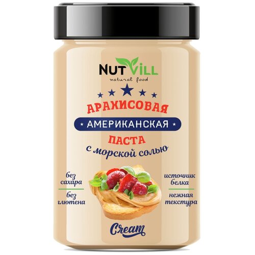Паста Американская арахисовая с морской солью NutVill, 180 г, стеклянная банка