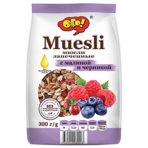 Мюсли запеченные с малиной и черникой 300 гр ОГО!