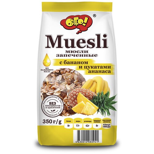 Мюсли запеченные с бананом и цукатами ананаса 500г. ОГО!