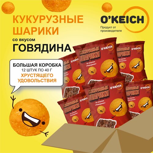 Кукурузные шарики со вкусом "Говядина" — 12 упаковок по 40 грамм