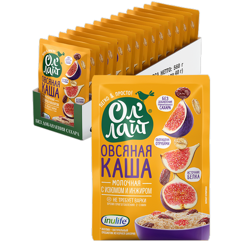 Овсяная каша быстрого приготовления молочная без сахара с изюмом и инжиром Ол лайт, 22 шт по 40 г