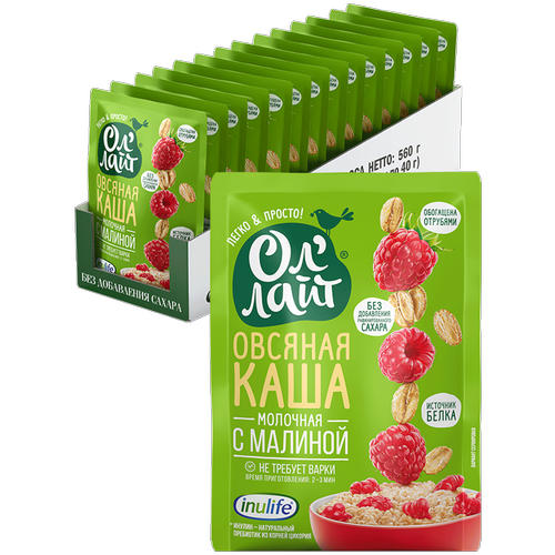Овсяная молочная каша быстрого приготовления "Ол’Лайт" с малиной в пакетиках ,22 шт. по 40г.