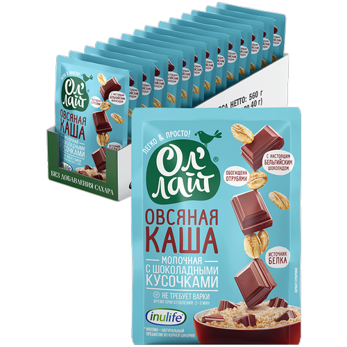 Молочная овсяная каша Ол’Лайт® с шоколадными кусочками 40г, 22 шт