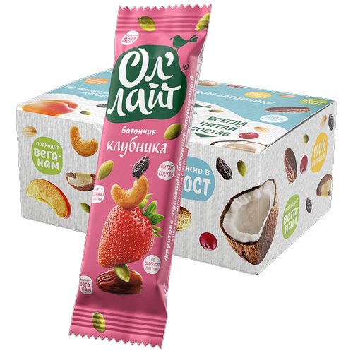 Фруктово-ореховый батончик "Ол’Лайт" Клубничный 30 г, 12 шт