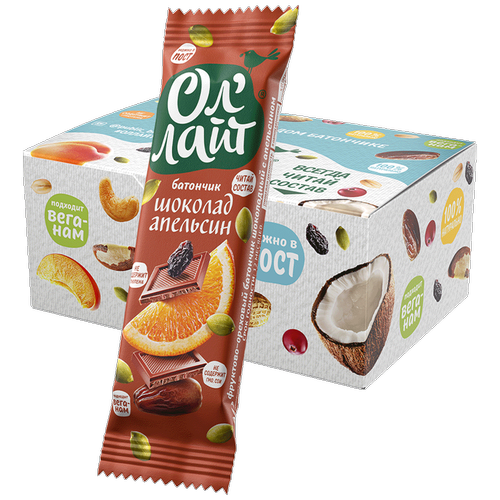 Фруктово-ореховый батончик "Ол’Лайт" Шоколадный с апельсином 30 г, 12 шт