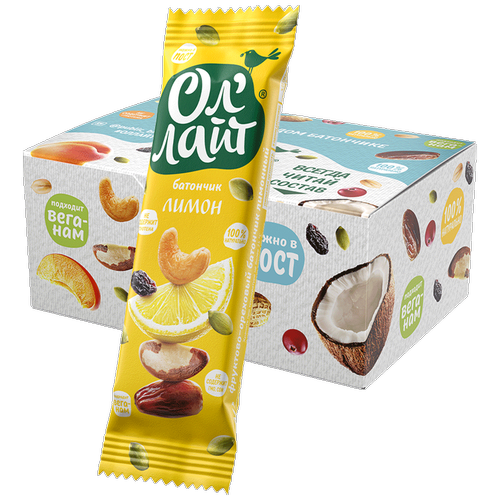 Фруктово-ореховый батончик "Ол’Лайт" Лимонный 30 г, 12 шт