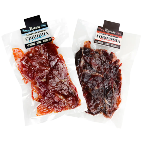 Чипсы Мясные Кудияр Мраморная говядина, Свинина с чесноком, 2 шт по 250 г