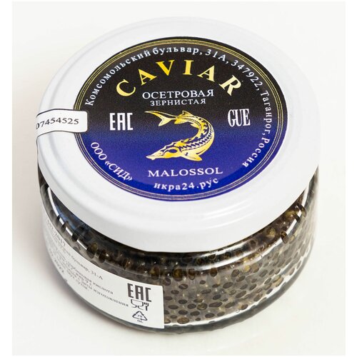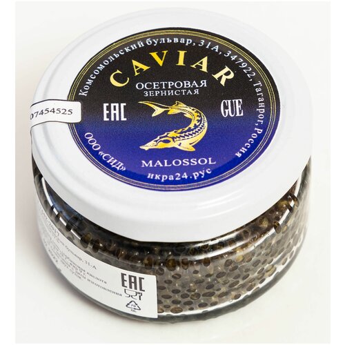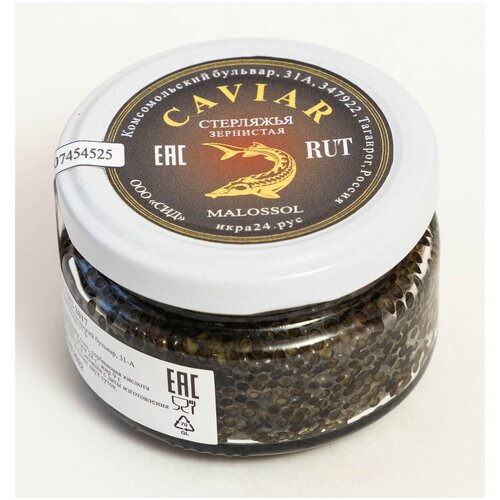 Чёрная икра стерляжья зернистая малосолёная 100 г.