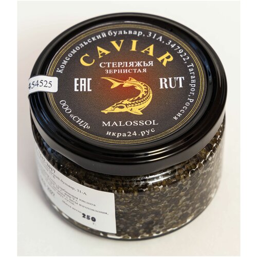 Чёрная икра стерляжья зернистая малосолёная 250 г.