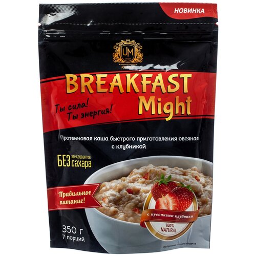 Протеиновая каша быстрого приготовления овсяная "Breakfast Might" с клубникой, 350г