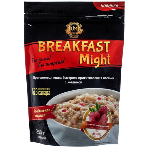 Протеиновая каша быстрого приготовления овсяная "Breakfast Might" с малиной, 350г