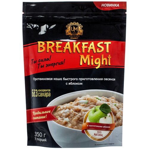 Протеиновая каша быстрого приготовления овсяная "Breakfast Might" с яблоком, 350г
