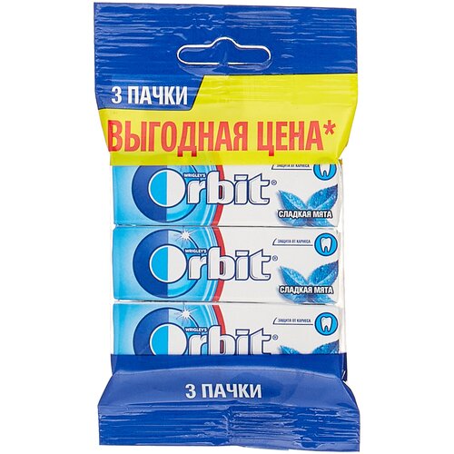 Orbit Сладкая мята жевательная резинка 3 пачки по 13,6 г